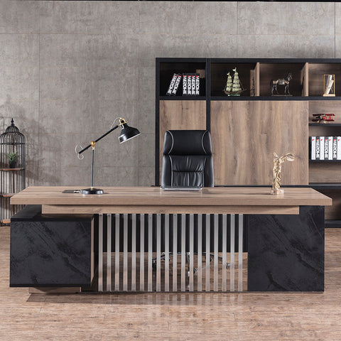 The Carter Executive Office Desk with Right Return 2.2M - Coffee & Charcoal Specifications: Structure:...