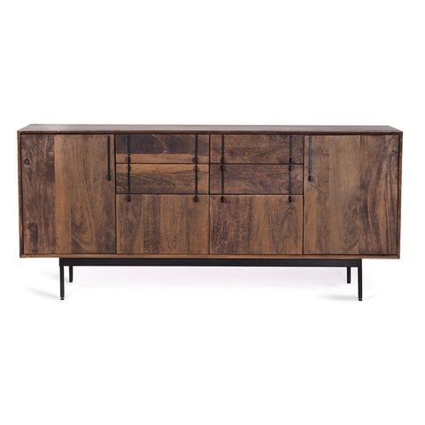 A sleek silhouette on long legs with a rustic surface finish. Enhance your living room with the monochrome excellence of the SHANTI Sideboard. Generous ample...