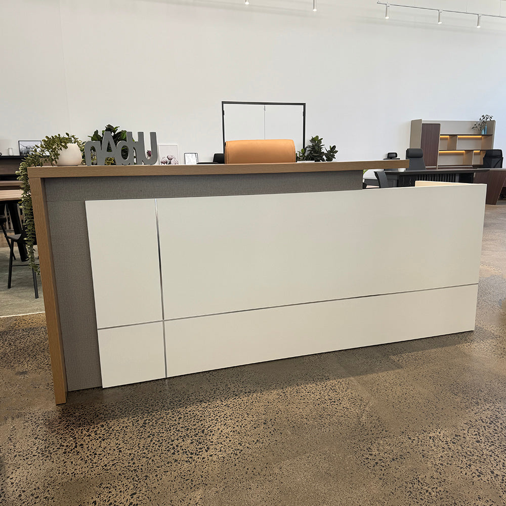 ZIVA Reception Desk 2.4M with Right Panel - Oak & White