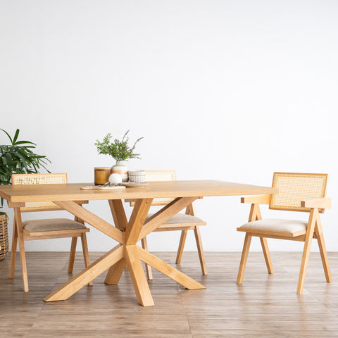 The KELYN Dining Table, measuring 220cm is a stunning piece of furniture designed to elevate your dining space. It features solid Ash Wood legs with a...