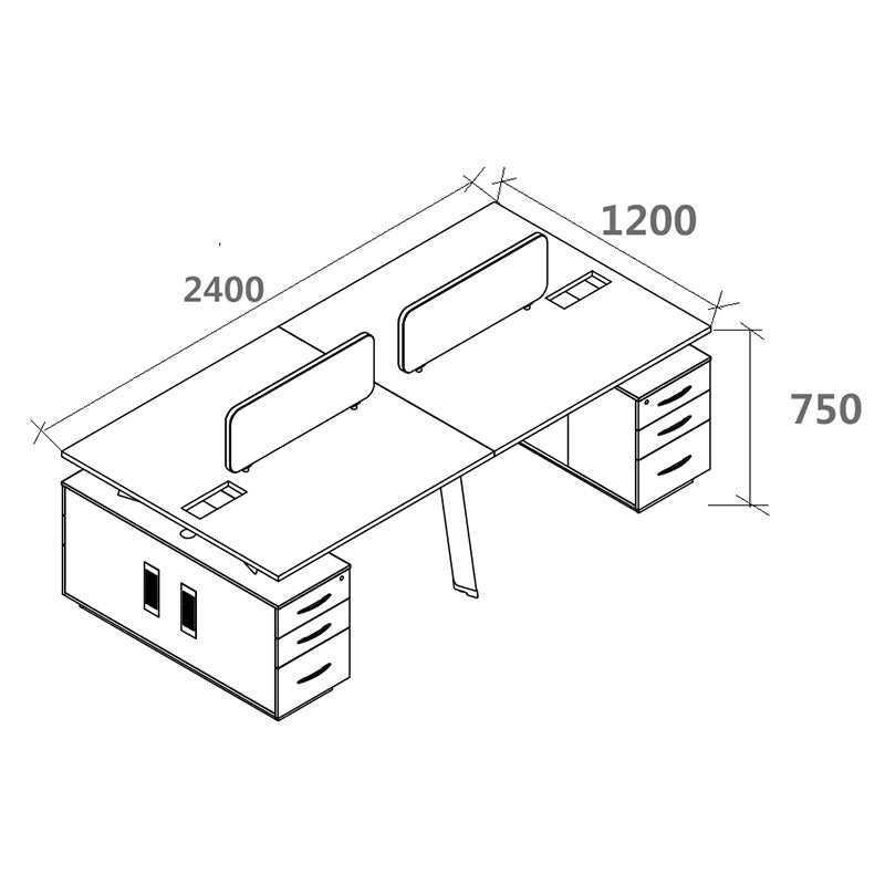 ARTO 4 people Back to Back Workstation 4 Cabinets 2.4M - Warm Oak & Black