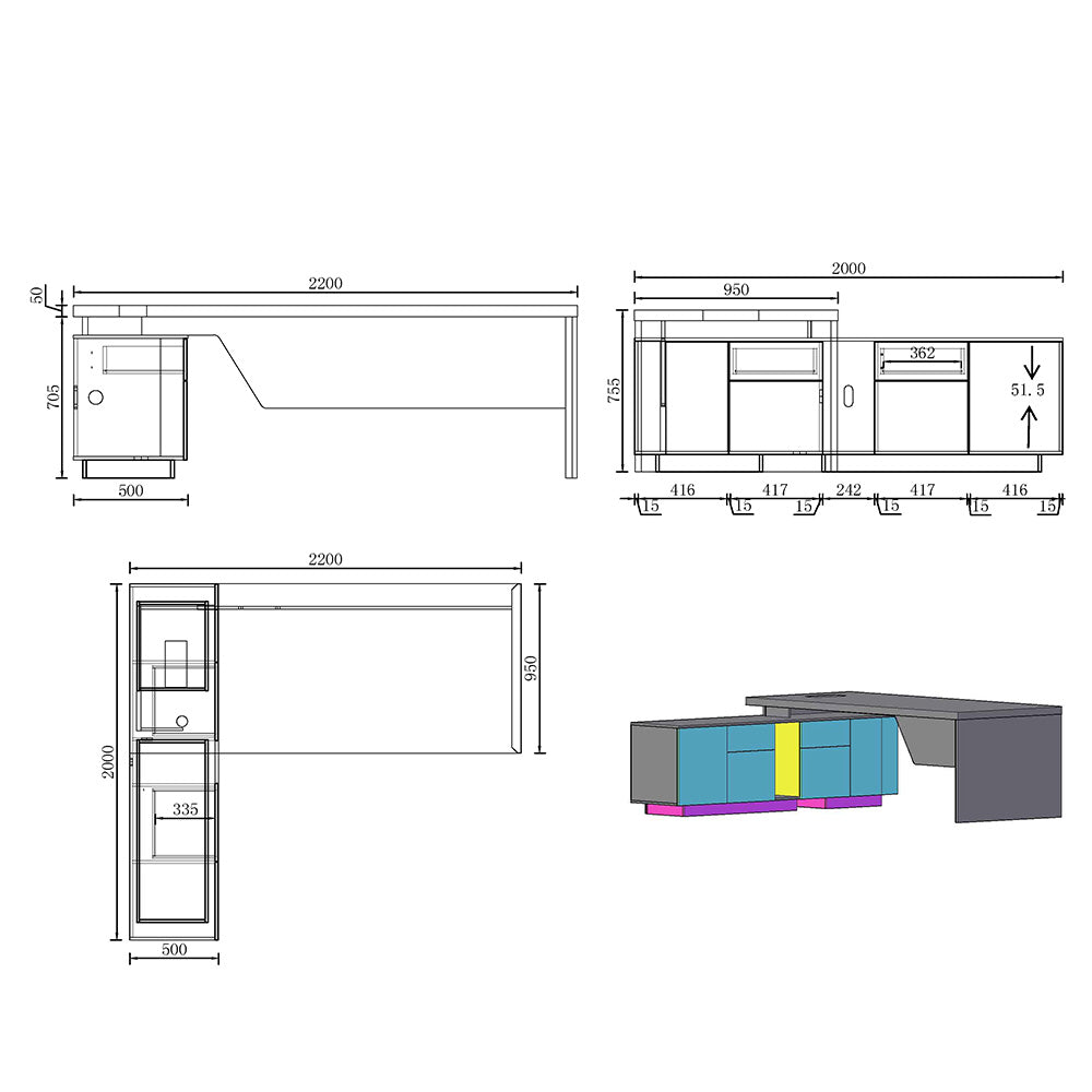 BALDER Executive Desk with Right Return 2.2-2.4M - Warm Oak & Black