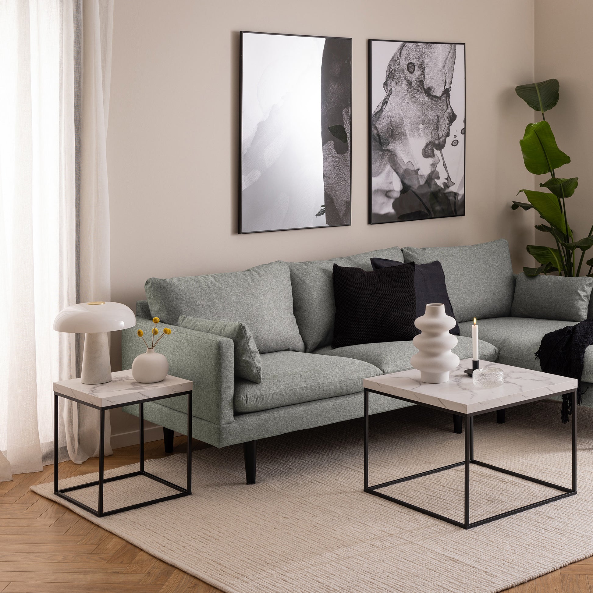 BAROSSA Side Table Marble look 40cm - White