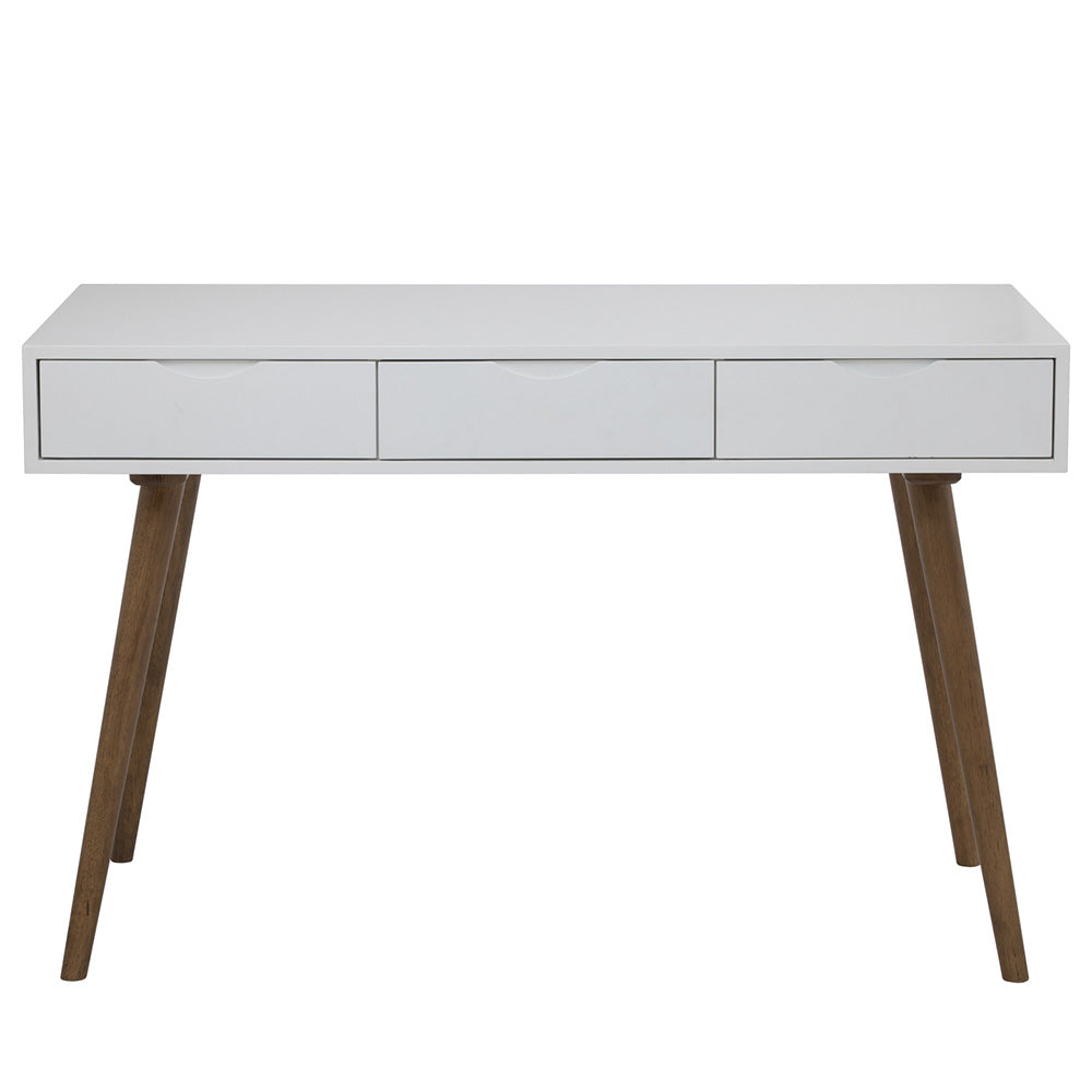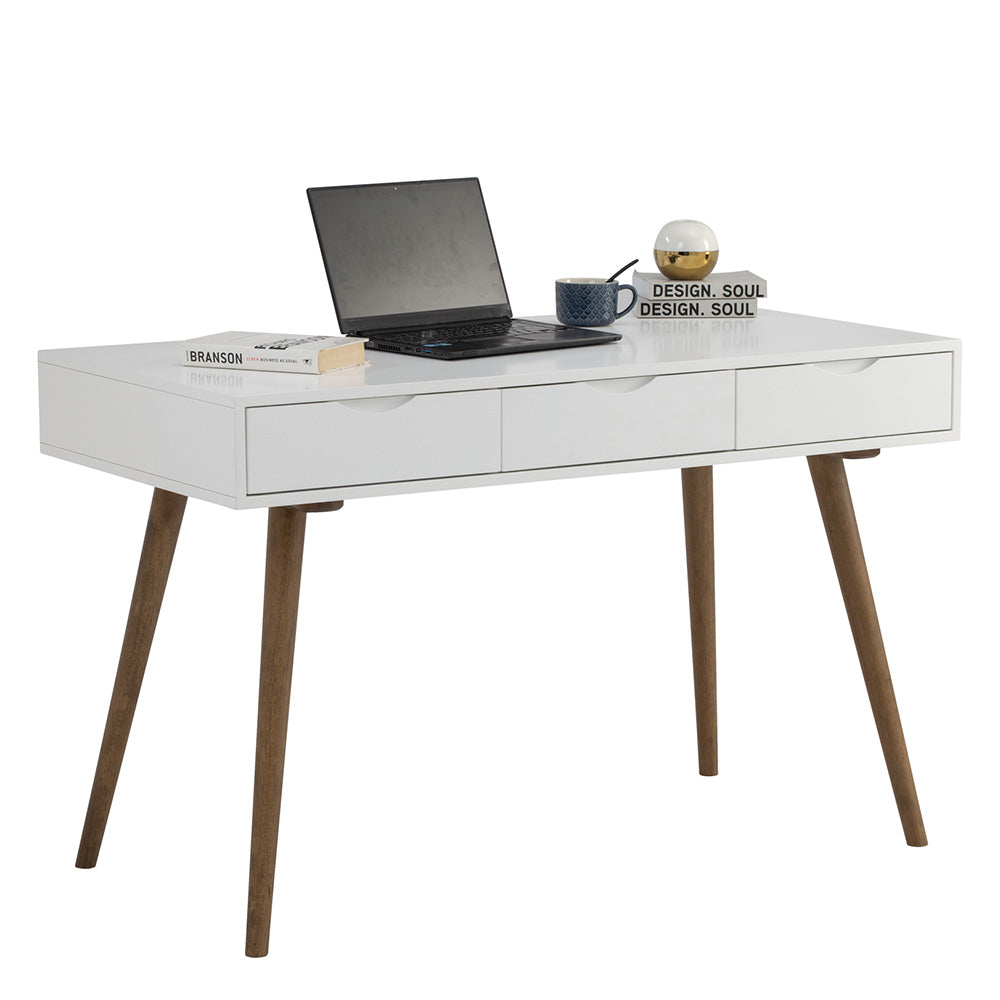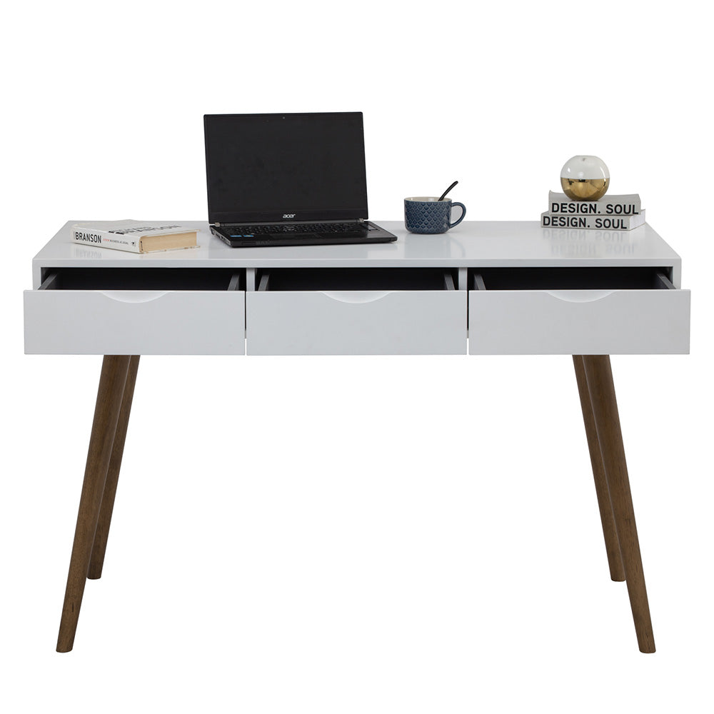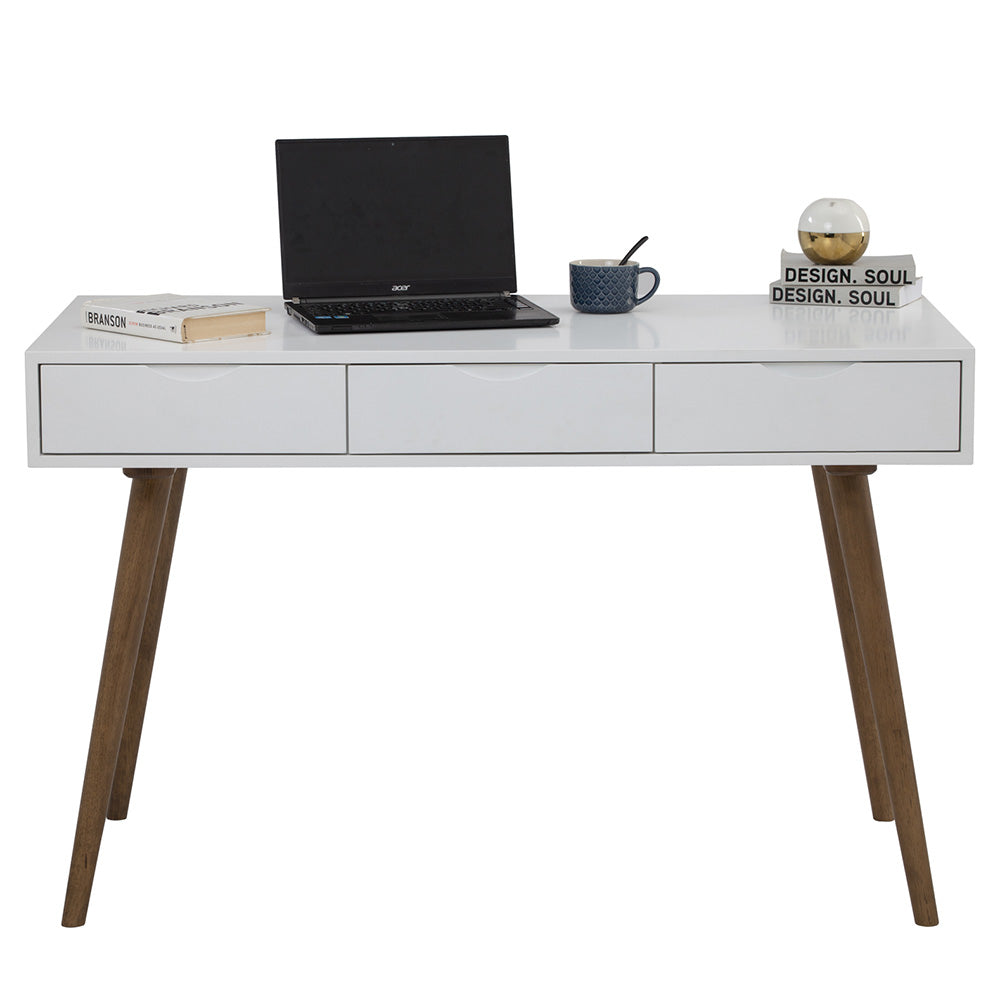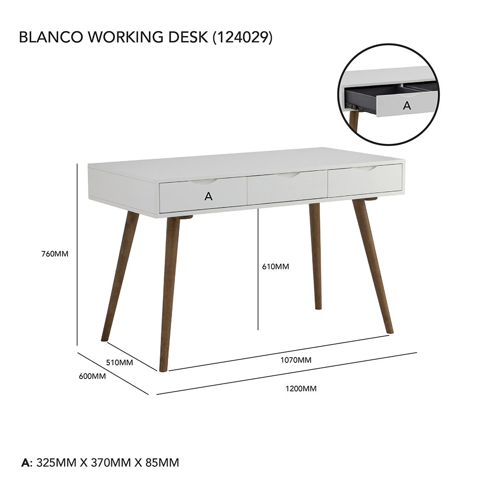 The BLANCO Study Desk combines a Scandi look with a retro aesthetic, featuring a matt white lacquered finish and three drawers. Its design is both minimalist and nostalgic, making it an appealing addition to various spaces. With its compact size, the desk is an ideal fit for smaller areas, offering functional workspace without sacrificing style.