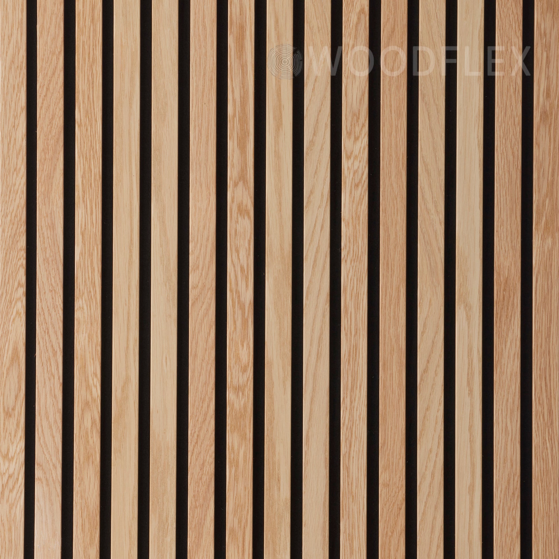 WOODFLEX Flexible Acoustic Wood Slat Panel - 3 Sided Full Wrap Oak Veneer on Black - 2700mm x 600mm