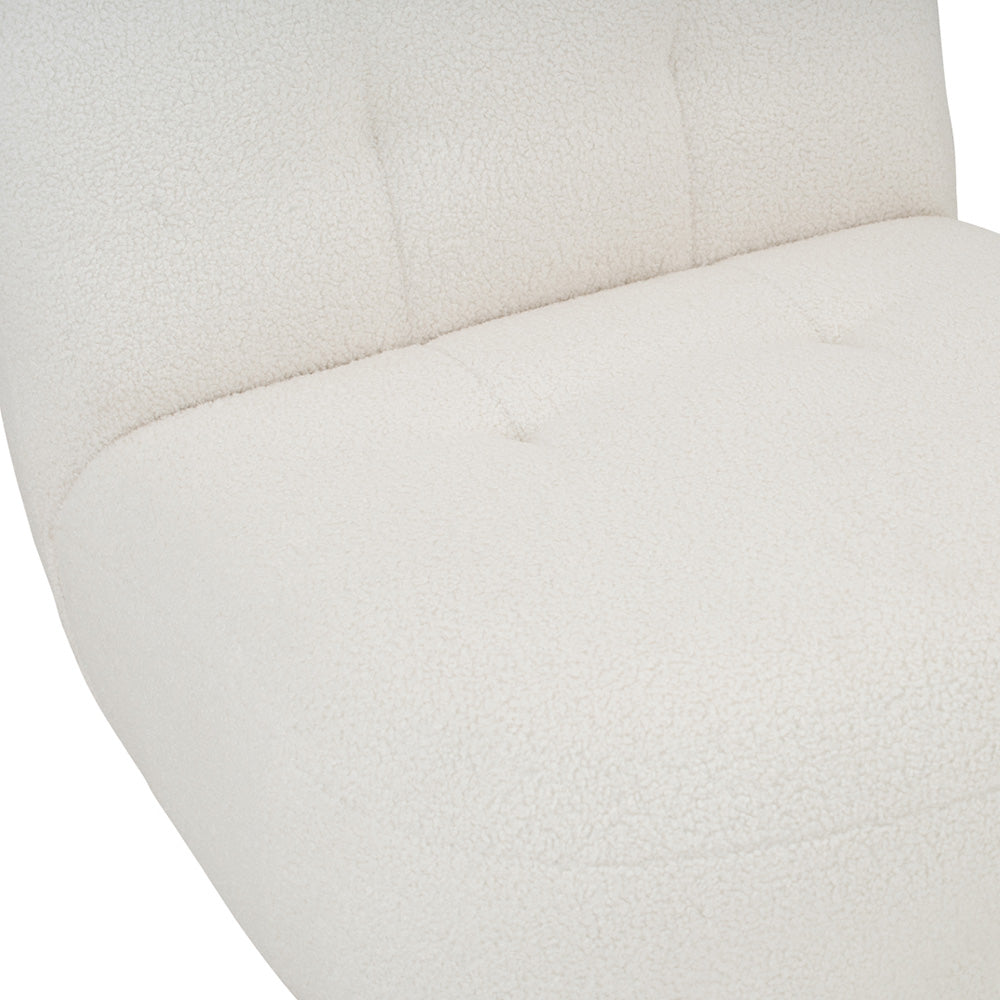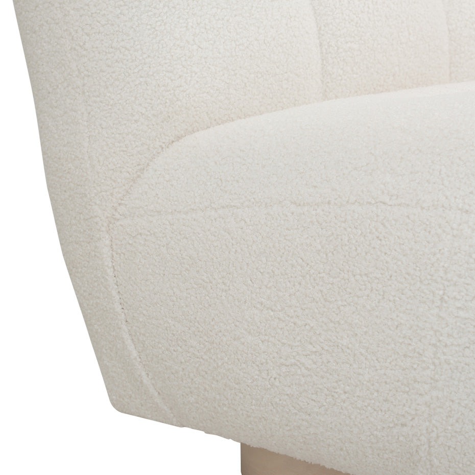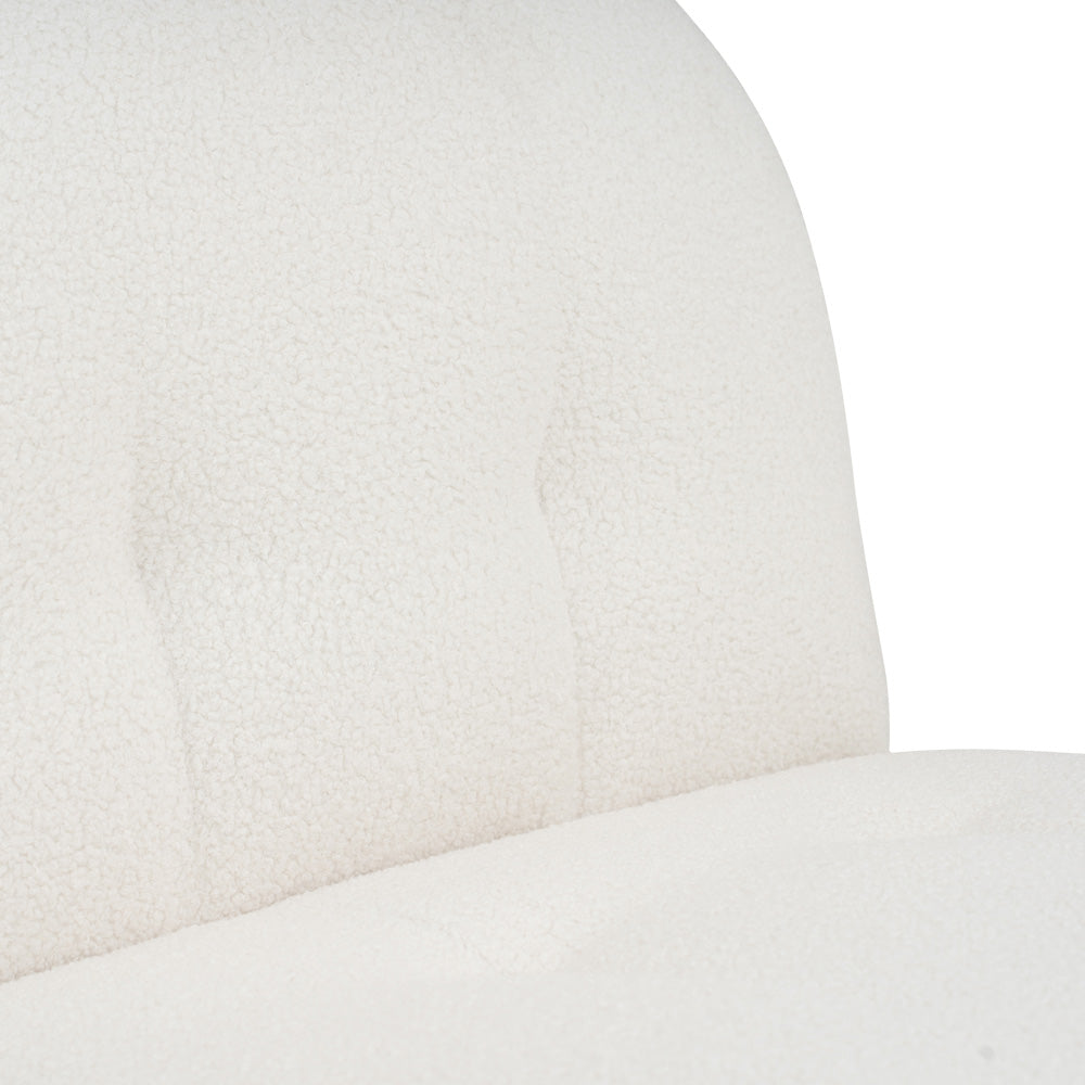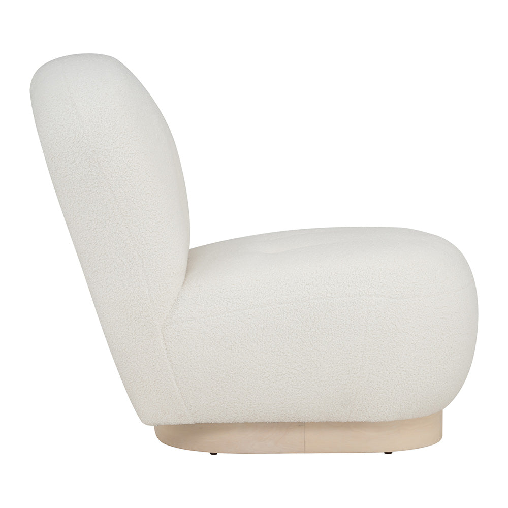 Ergonomically designed with a slight recliner backrest and a wide seat for added comfort. With it's chic round silhouette, this chair exudes contemporary charm, making it the perfect addition to any stylish living space. The luxurious boucle fabric adds a touch of elegance while providing a soft and cozy seating experience.