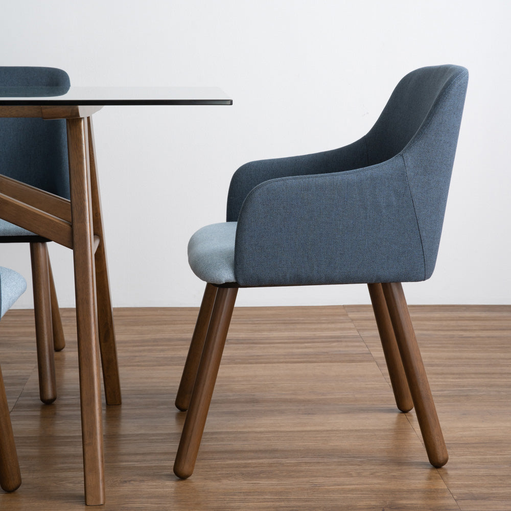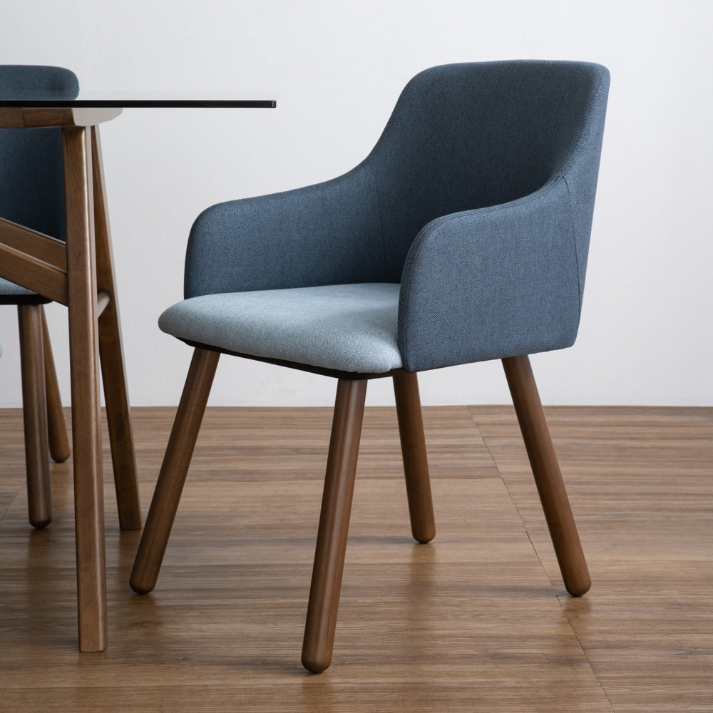 It is constructed using high-quality materials such as Malaysian Oak and bentwood wood, ensuring durability and an elegant look. This chair is upholstered with high quality fabric, providing a comfortable seating experience and the fine stitching adds to its aesthetic appeal.