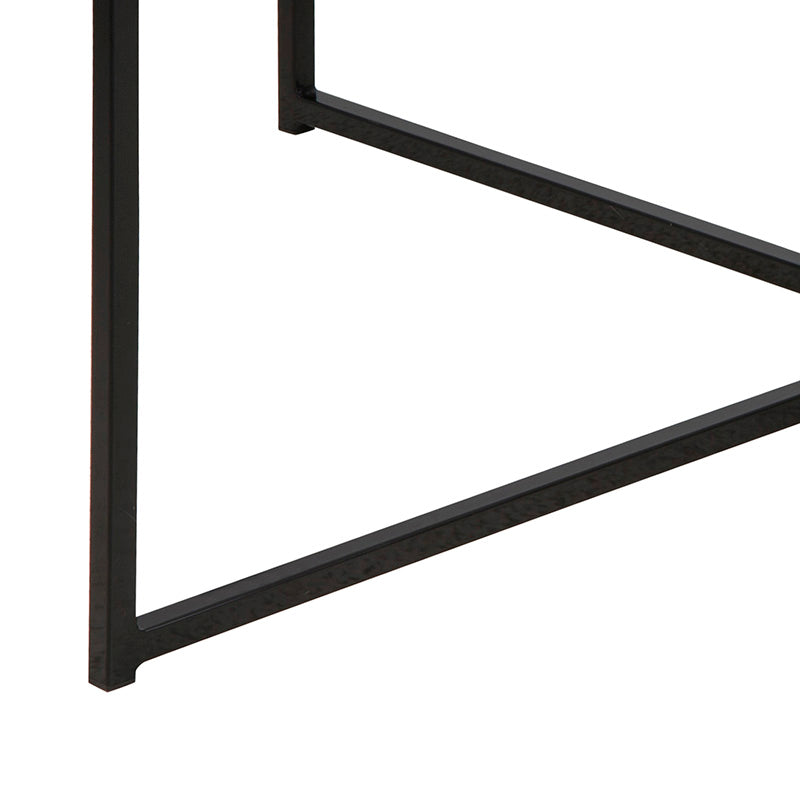 The KOLINA square Coffee table has a marble black print on tempered glass and a black metal frame. Its design and the combination of these materials will give your room an elegant appeal.