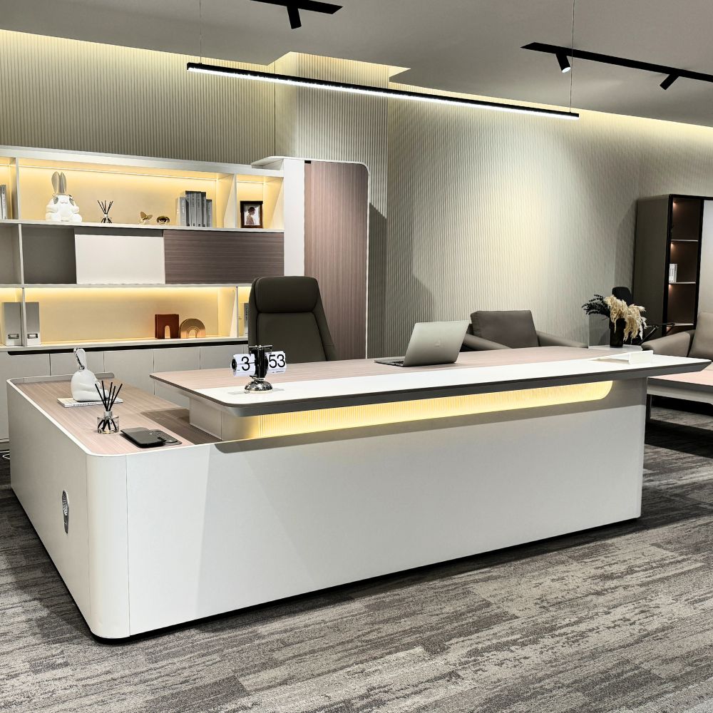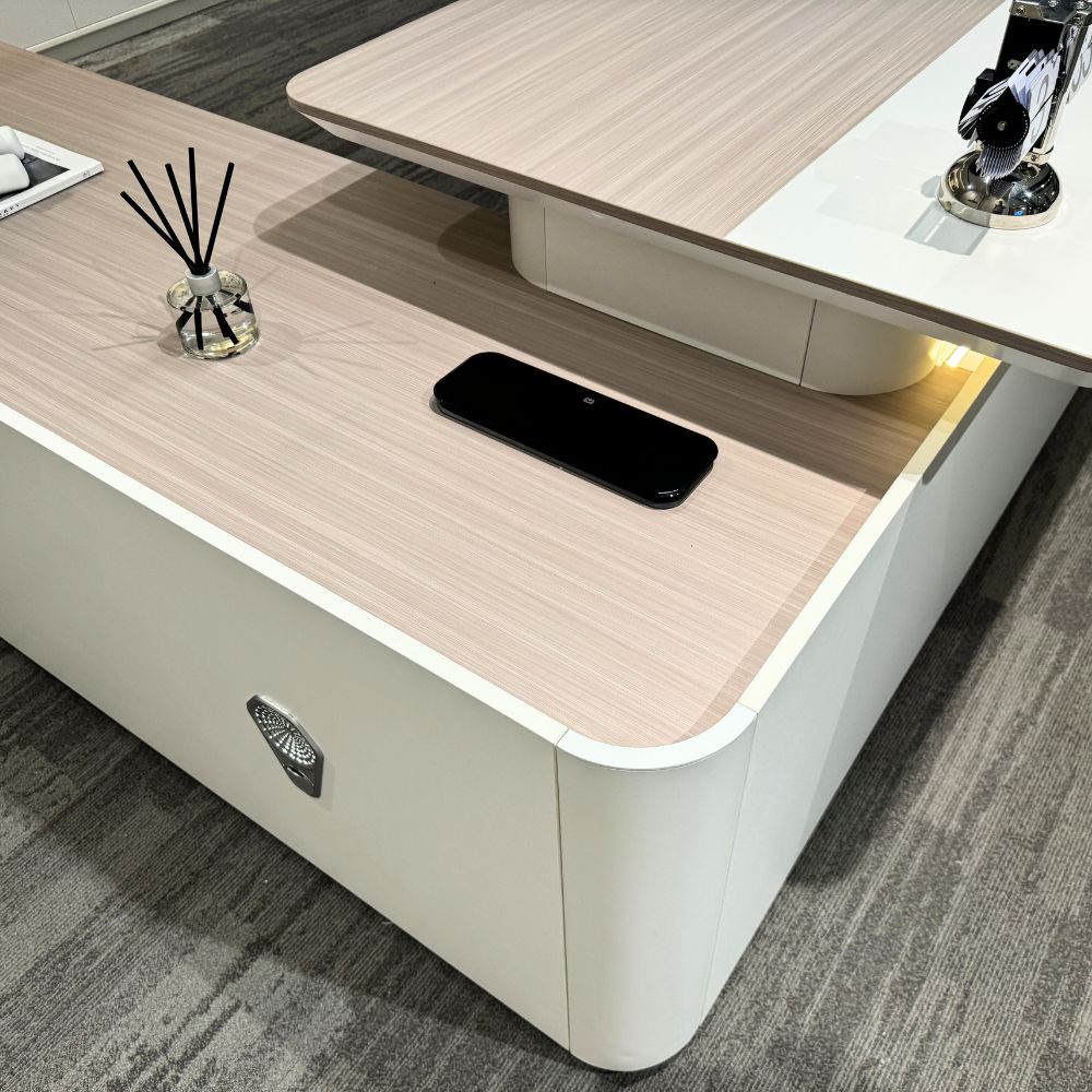 LUSH Executive Desk Right Return 240cm - White & Taupe