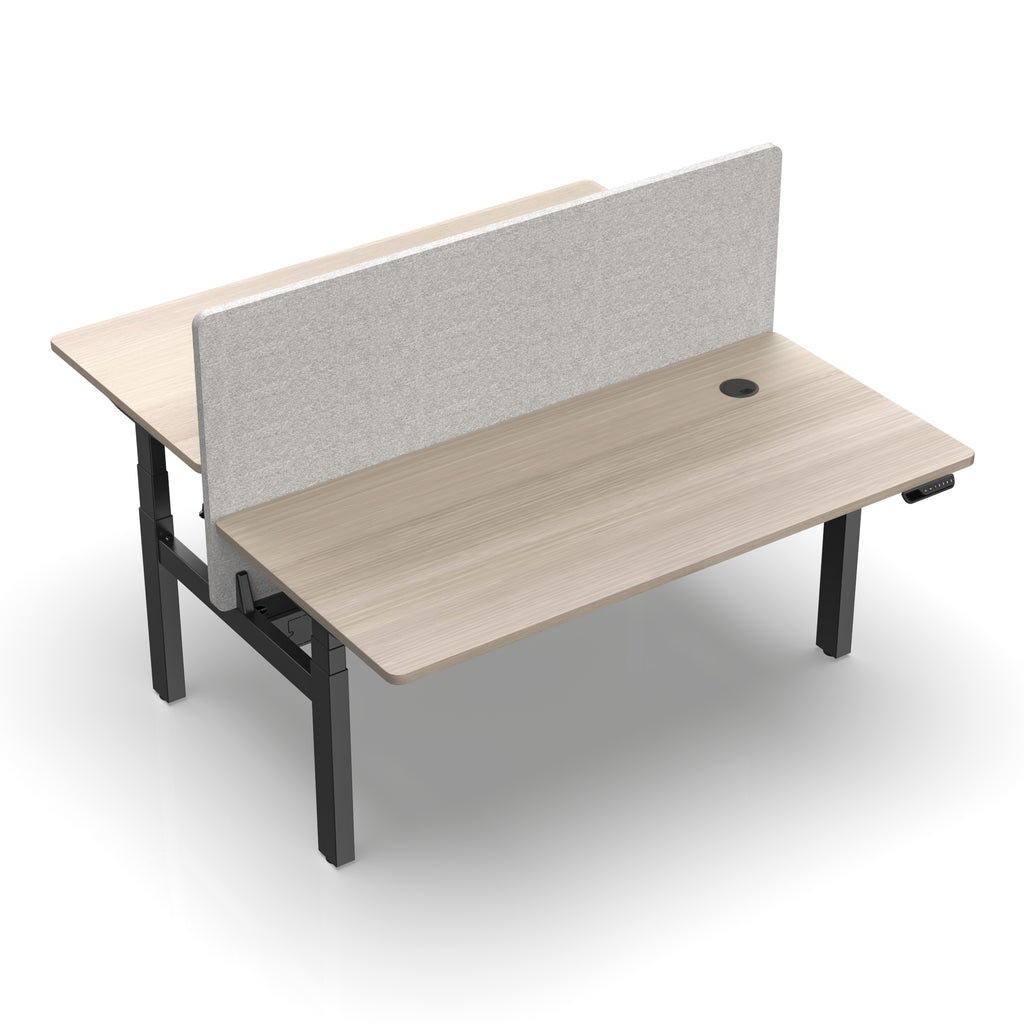 Enhance your work environment with the MARLO workstation with Dual lift. Designed for 2 people, it offers a spacious and environmentally friendly workspace, providing ample room for productivity. The light grey fabric partition adds a touch of privacy while maintaining an open layout that encourages teamwork.