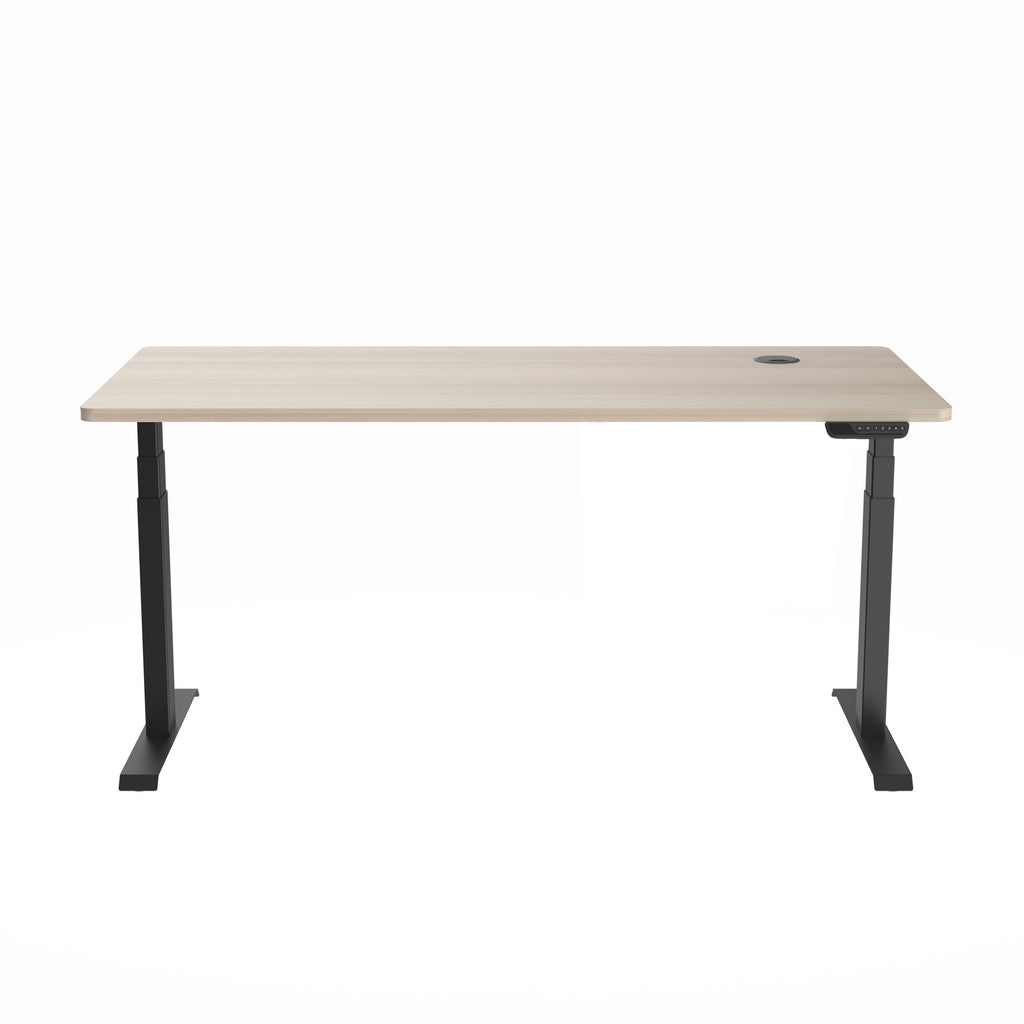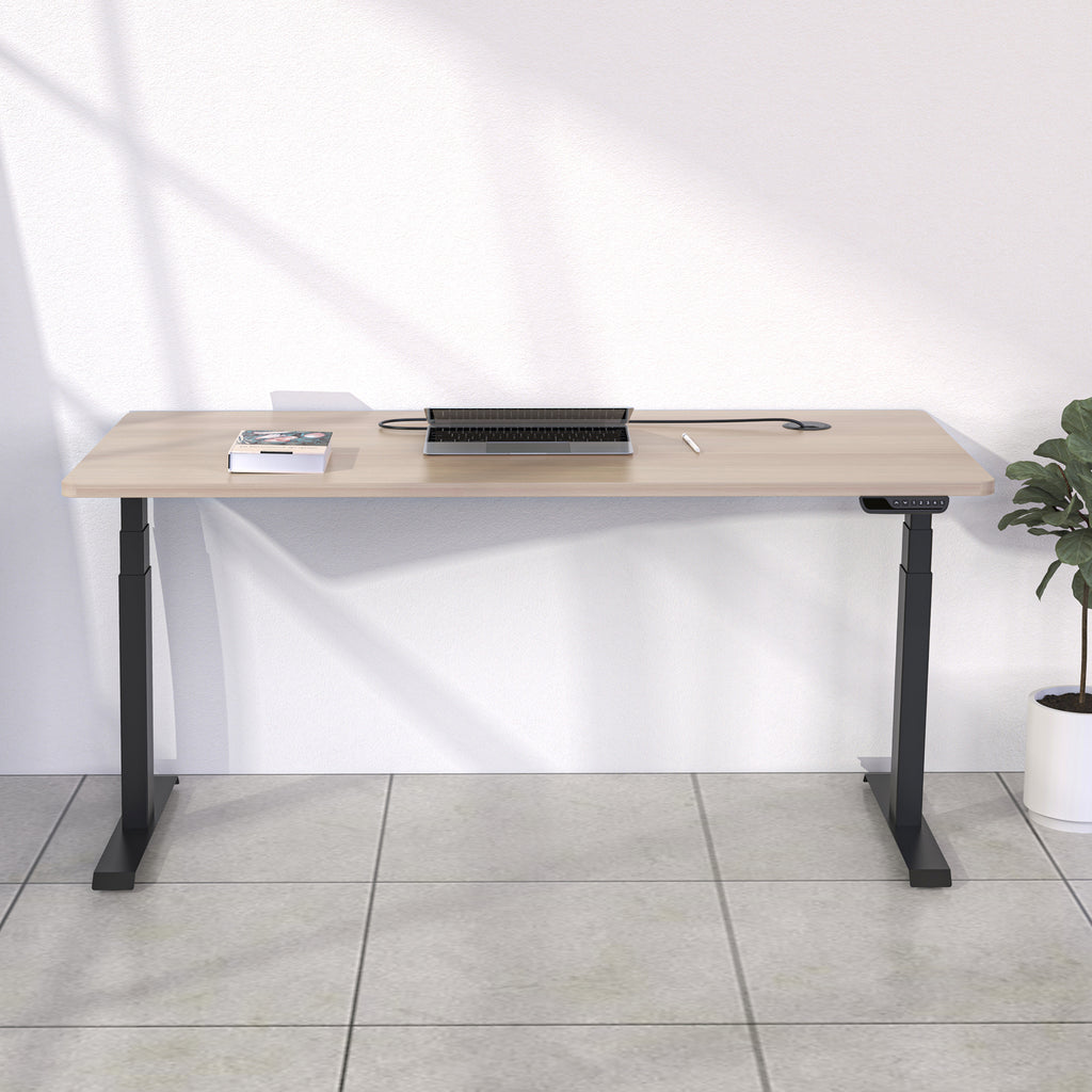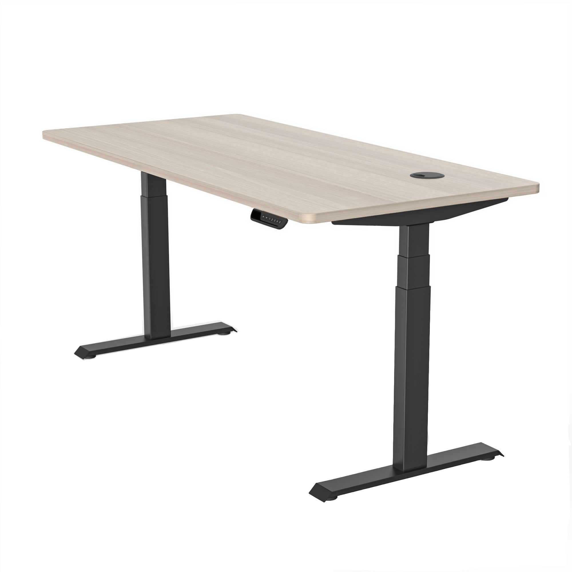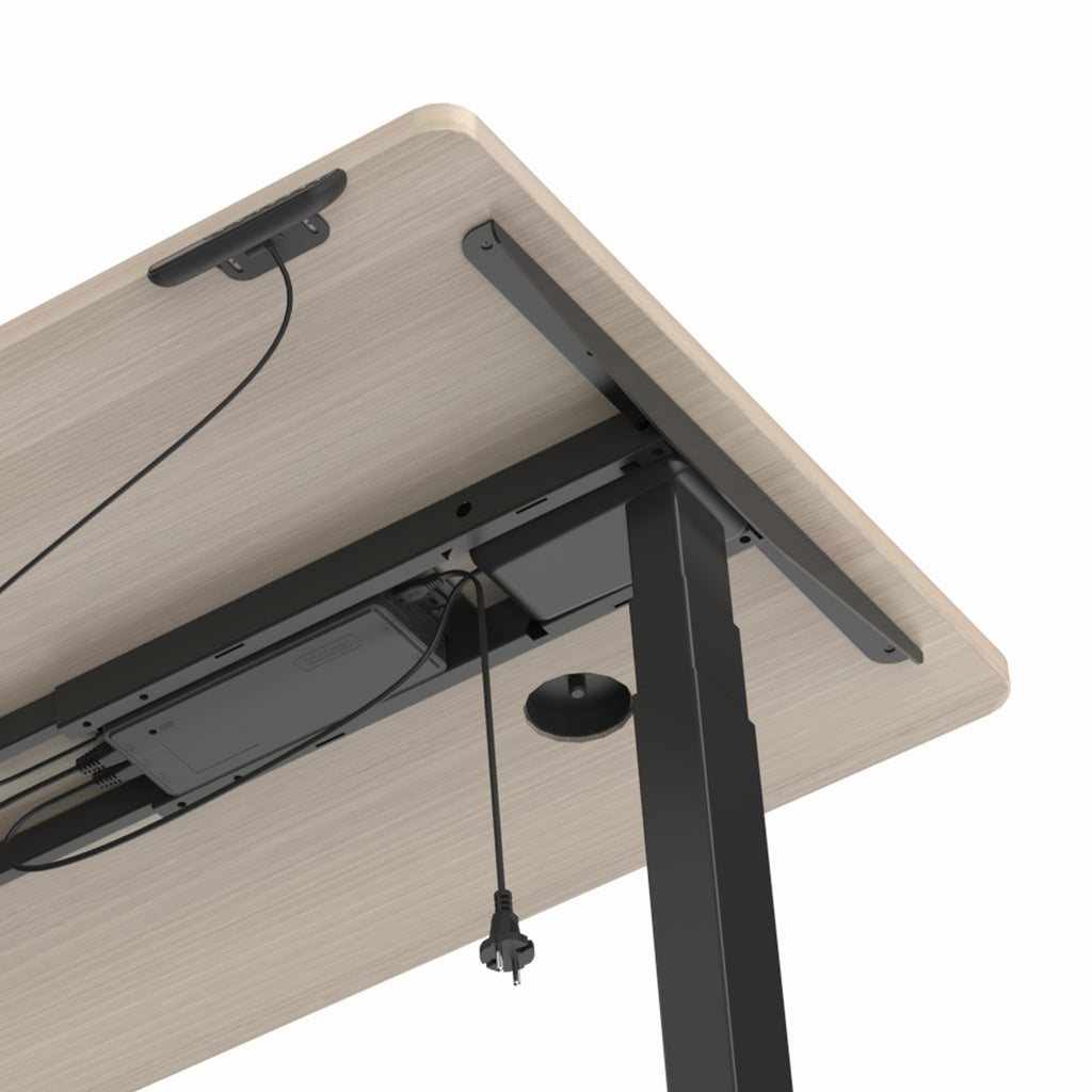 The body of the workstation is constructed with sturdy metal and equipped with an electric lift for easy height adjustment. The table top is made of E1 boards with a melamine finish in oak color, ensuring durability and style.