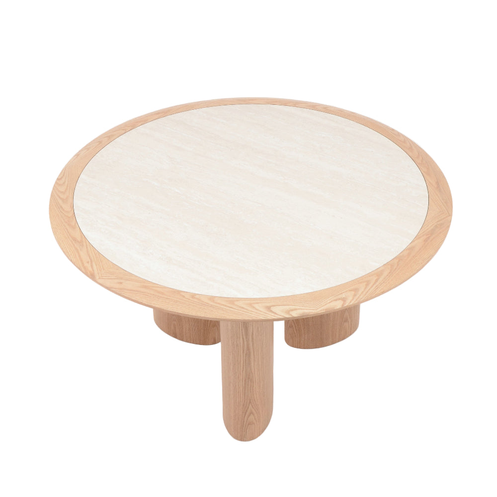 The LAYSON Round Dining Table is a statement piece designed to elevate any dining space. Featuring a sleek ceramic top and solid wood legs, it offers both strength and style.