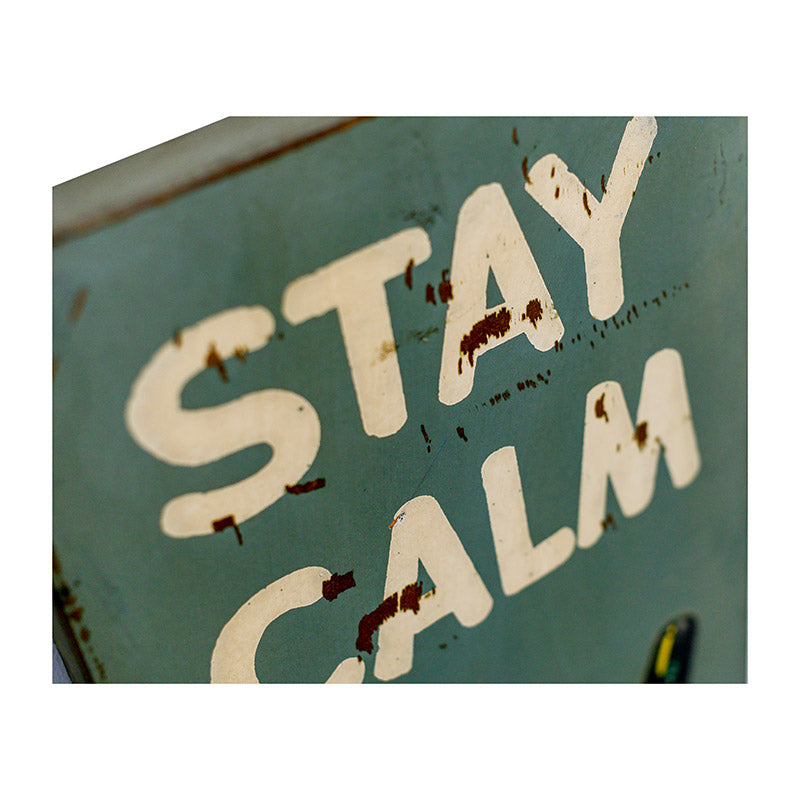 Wooden Print "Stay Calm Pop A Top" In Antique Blue